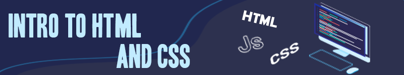 A small computer positioned on the right-hand side of the image serves as a visual anchor, symbolizing the digital nature of the courses. Around the computer, the words "HTML," "JS," and "CSS" are strategically placed to represent the core technologies covered in the courses, reinforcing the content focus.